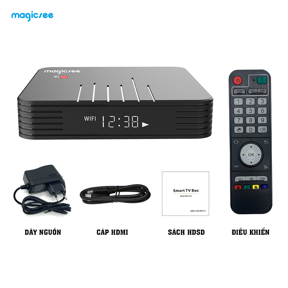 Bộ sản phẩm của tivi box magicsee n5 max gồm những gì?