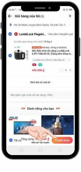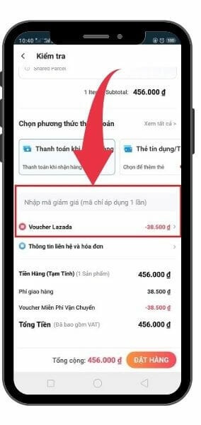 Bước 2: Đặt hàng. Ở bước này, các mã giảm giá Lazada sẽ được tự động được áp dụng khi đơn hàng thỏa mãn điều kiện.