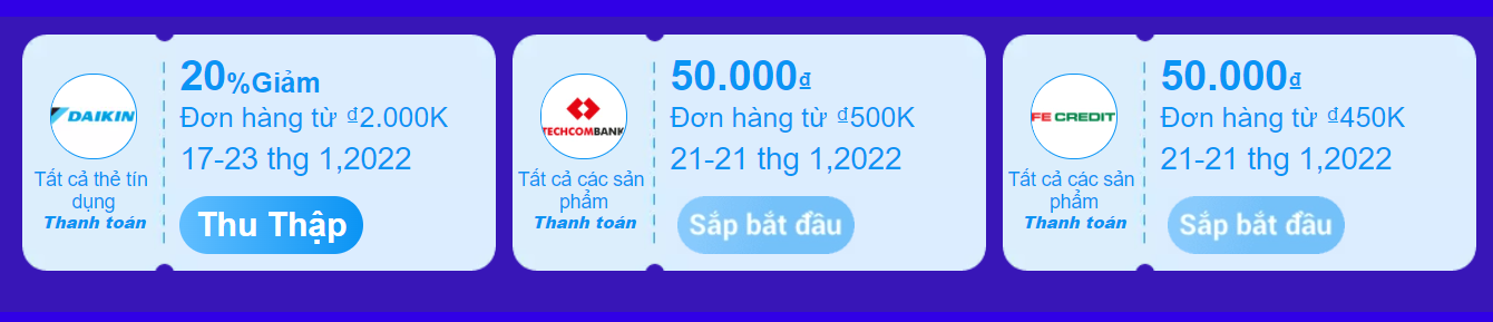 - Giảm 50K cho đơn hàng từ 500K khi thanh toán bằng thẻ ngân hàng Techcombank