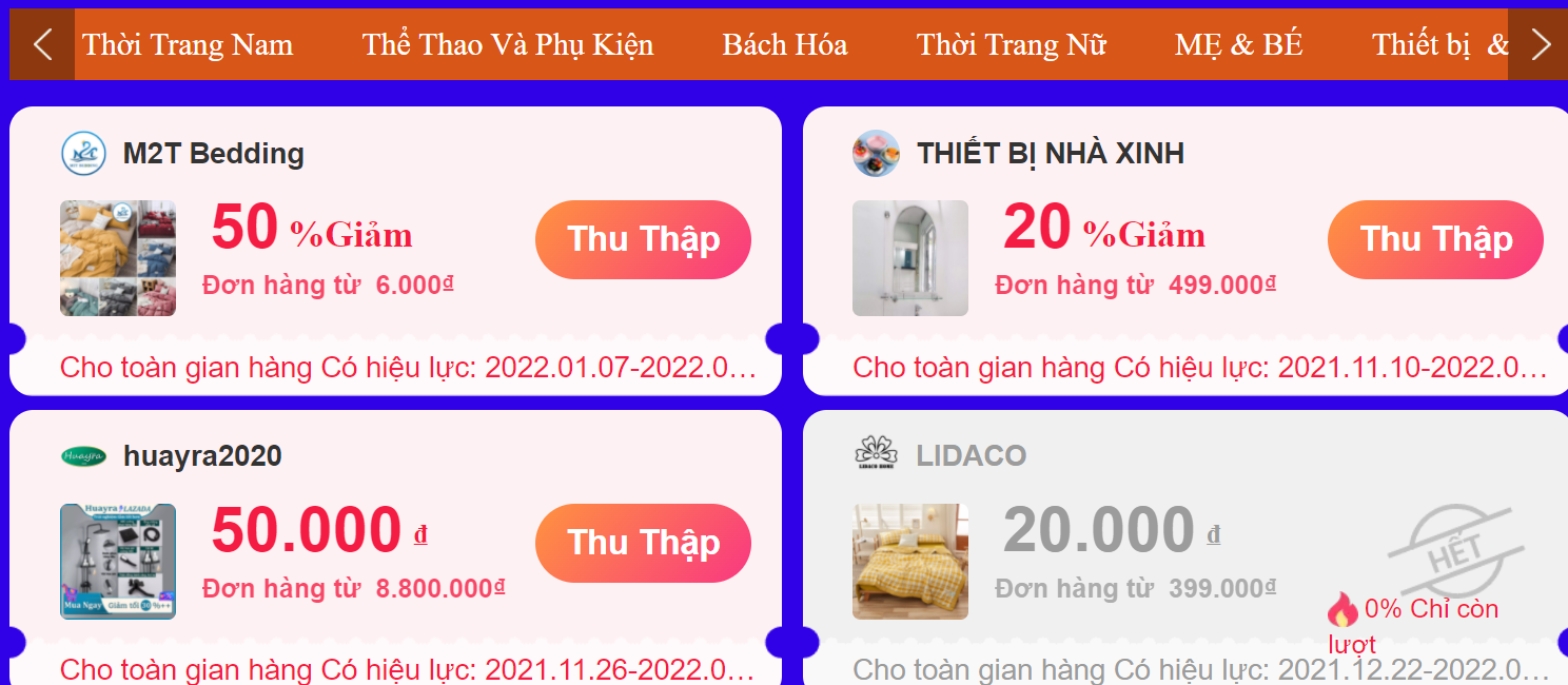 - Voucher từ ngành hàng: là những mã giảm giá được Lazada sắp xếp theo từng ngành hàng nhất định để người dùng dễ dàng tìm kiếm và sưu tầm