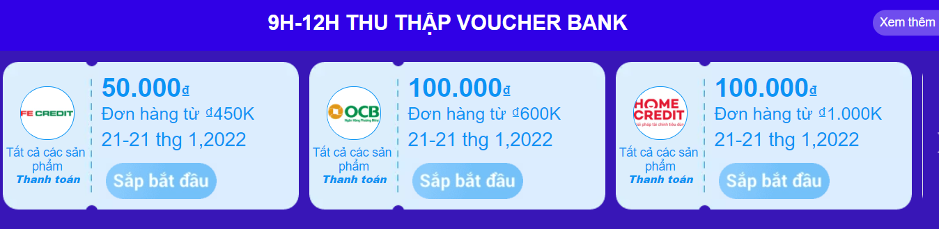 - Mã giảm giá theo từng khung giờ: là những voucher giảm giá được tung ra ở các khung giờ khác nhau trong ngày: 0h - 9h - 12h - 16h
