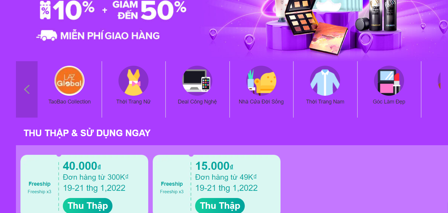 Cách lấy mã miễn phí vận chuyển Lazada có chút khác biệt giữa 2 phiên bản truy cập là Web và App:
