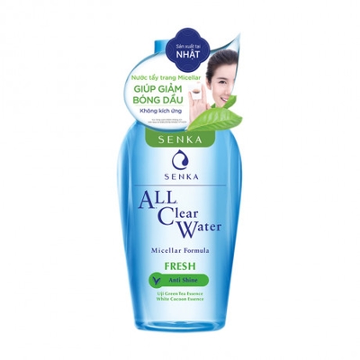 - Nước Tẩy Trang Senka Micellar Dưỡng Trắng All Clear Water Micellar Formula White nhẹ nhàng làm sạch 3 lớp: cặn trang điểm - dầu thừa - bụi bẩn và ô nhiễm. Không chứa dầu gây nhờn, không gây kích ứng, không có chất tạo màu.