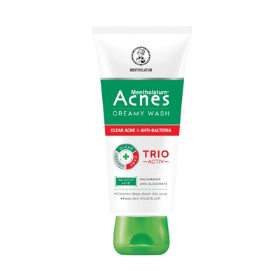 Kem rửa mặt Acnes Creamy Wash Trio Activ chứa giải pháp toàn diện chăm sóc mụn theo ba bước gồm: Làm sạch, ngăn ngừa, chăm sóc. Cụ thể như: