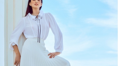 Với các món đồ cơ bản như váy chữ A, áo sơ mi tay phồng, áo blazer, áo sweater cùng với quần jeans ống loe...